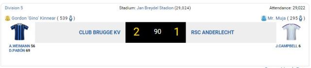 Club Brugge climb to 3rd place while Anderlecht fall to 7th in Division 5 after Club Brugge to do the double over Anderlecht in a very dominant performance. After the game we had a world with the 2 managers.