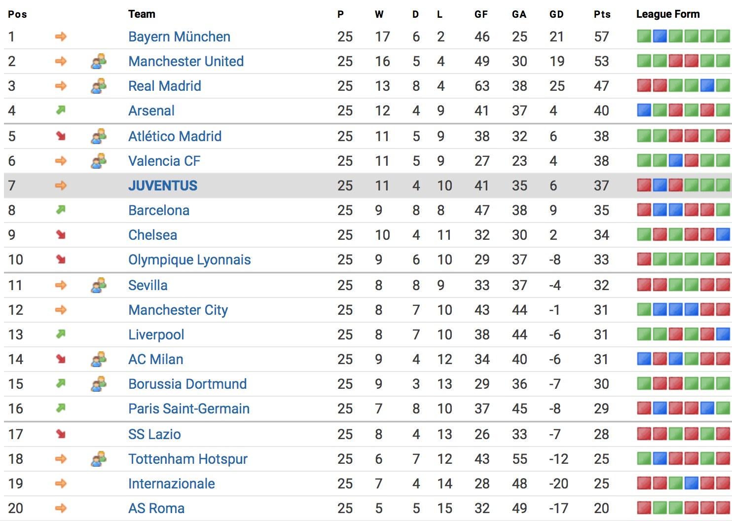 Juventus are the leading Italian side currently in the standings as was to be expected at the start of the season however the season has debatably been a very mixed one with the Old Lady losing almost as many games as they have managed to win.