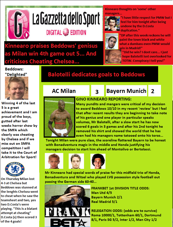 Please click read more to find out what happened at the San Siro tonight, Gino Kinnearo’s take on Chelsea cheating week in week out and also FrankBet 1st Division title and relegation odds.