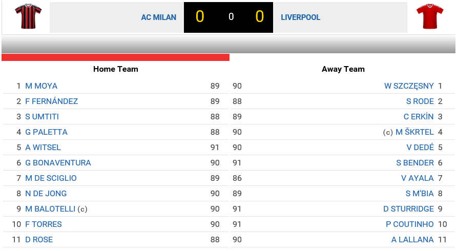 What followed was a third goal of such sublime superior ability that it had the San Siro crowd on their feet in utter shock and adminration and a certain Gordon Kinnear sinking to his knees on the sidelines in shock. It was a pass from substitute Bacca to De Sciglio who proceeded to nutmeg Markovic, go past Bender (who incidentally slipped over in the process) nutmeg Skrtel and to blast the ball from 45 yards beyond the keeper to make it Milan 3-0