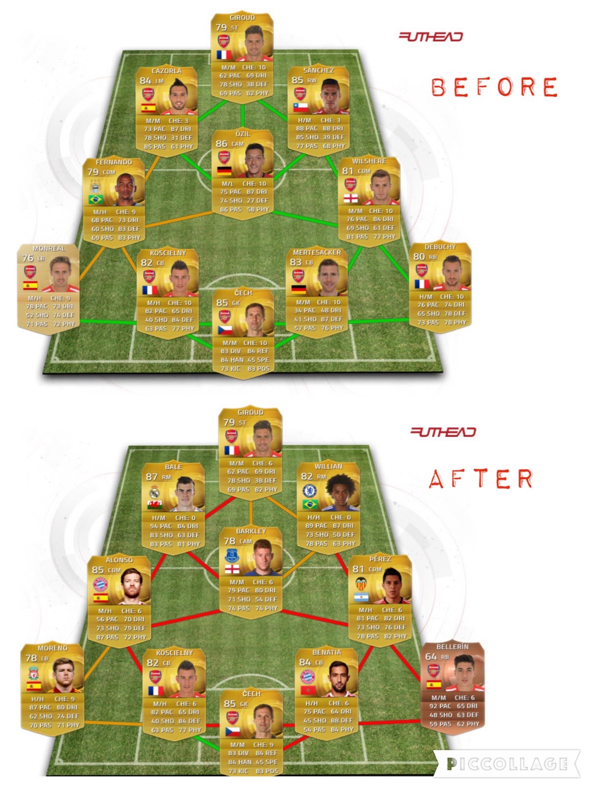 With both sides Petr Cech is in goal, a reliable, experienced keeper and one of the words best. The current full backs of Bellerin & Moreno lack experience but have bags of energy and pace compared to the more stable but aged Monreal & Debuchy. The central of the defence has improved with the arrival of Benatia who replaced the German Mertesacker to partner Koscielny. Moving just in front of the defence is new pairing Alonso and Perez, both more defensively minded than the old pairing of Fernando and Wilshere, when fit Wilshere would had been a vocal point of this team for sure but with lack of minutes we feel Bowes made the right choice in brining in the experience of the new defensive midfielders. Moving to the 3 attackers behind the lone striker, it certainly has taken a hit in talent to improve the rest of the team with Sanchez, Ozil and Santi Cazorla providing a dangerous attacking threat, but Bale, Barkley & Willian is sure to have defences scratching their heads on how to handle them. This lands us to our lone striker, the man whos job it is to score the goals, that job is in the hands of Oliver Giroud. A vocal point with his height or the option to keep it on the floor and lay it off to the pace on the wings is something which fits Bowes’s system perfect!
