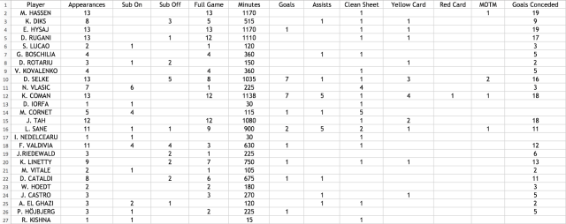 It was K.Coman in fact whom DP praised in his post tournament comments for his importance in the cup victory, contributing 7 goals & 5 assists during the campaign making him the joint top scorer alongside D.Selke & joint top for assists with L.Sane. A clear star for the side although he was only awarded the MOTM award on 1 occasion during the 13 game tournament.