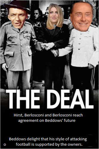 An urgent meeting was called this morning which has resulted in an historic agreement between Hirst and the Berlosconi’s to secure the future of AC Milan over the coming season and in particular that of manager, Stephen Beddows.