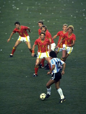 The iconic image of Maradona running at Belgium…see the fear in the 5 defenders faces
