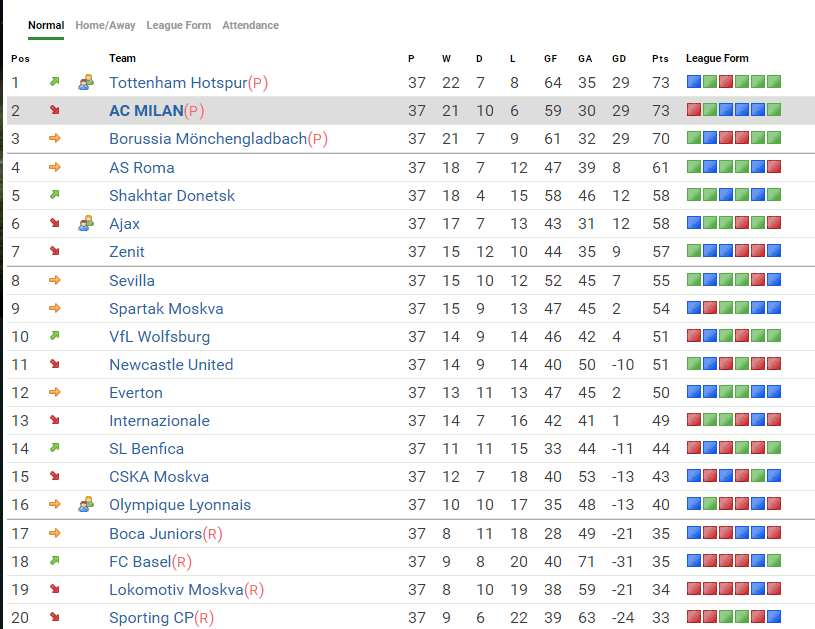 In the fight for the play-offs the new Newcastle manager Norman Little or Little Norman as he has become known with the fans singing “you’re not a fat Spanish waiter” to him at home games has the chance to give Sevilla and potentially Spartak a chance to make the play-offs – however Zenit and Libaan are looking strong for an awat match against Roma on Friday night.