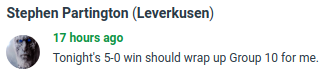 Hamburg and Flamengo are also assured of qualifying, while Celtic appear to be favourites to snatch the final qualifying place from Berlin, assuming they overcome Basel next week.