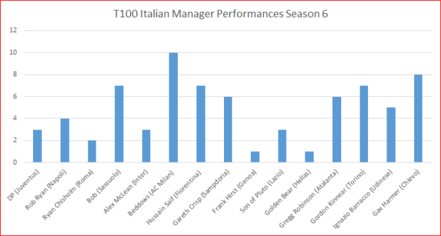 Kinnearo: “Thanks Mr Beddows for your hospitality, free t-shirts, CD’s and excellent words I will finish this interview with my famous graph outlining the performance of the Italian based managers in T100 in season 6.