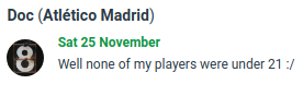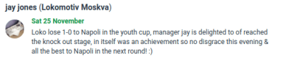 Confusion reigned at Youth Cup HQ prior to the quarter final draw. Rounds 2 and 3 were pre-seeded, but the QFs were always supposed to be a random draw. Since his team’s defeat to Juve in the Youth Cup 3rd Round, however, Youth Cup supremo Beddows hadn’t been seen anywhere, and rumours were rife he was too busy drowning his sorrows in Big Barbs’ warm embrace.
