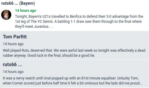 The semi-finals of this season’s Youth Cup produced spectacular and unprecedented drama both on and off the pitch last night. Well, one of the games did. Tournament favourites Benfica could manage only a draw at home to Bayern, crashing out 4-1 on aggregate. Meanwhile, over in Turin…