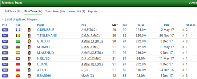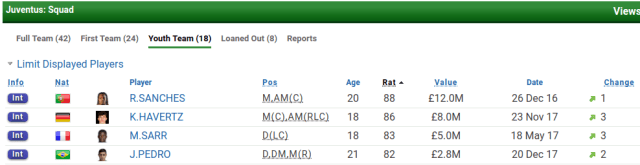It’s a testament to Juve manager DP’s dealings that the senior team now sit comfortably in fourth place in Division One, having seen the Madrid and Lisbon youth teams fall by the wayside. Managerless Madrid’s seniors, meanwhile, languish in mid-table, while Benfica’s first team are fighting a very real threat of relegation into Division Three.