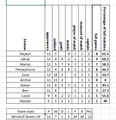 19. Persephone – my daughter – and as a parent manager you always worry if you child will merit their place in the team – I am happy to say ability wise she definitely does – top scorer and most assists across the team so far – moment of the season arguably her first half hat-trick v Repton. Attitude and work rate need to be better though sometimes – its tough managing your kid! lol.
