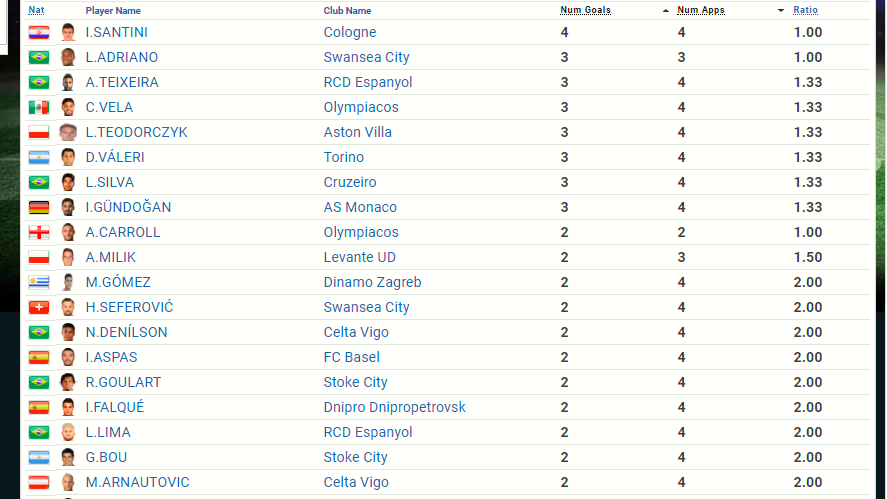 | TOP GOALSCORER TABLE |