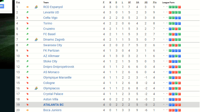 Some good looking fixtures on sunday, Espanyol host Basel looking to hold on to top spot whilst Atalanta and Aston Villa do battle at the bottom.