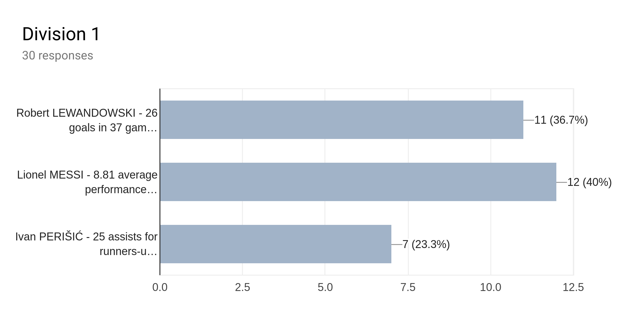 Robert Lewandowski was unlucky to finish second in the poll after scoring a colossal 26 goals in 37 league games.