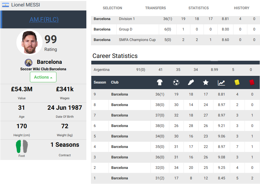 Messi has been by far the greatest player in Top 100 history and long may his form continue. We will be going all out for the league again this year to try and make it a record breaking 6 titles and Messi will be a major part of that ambition.
