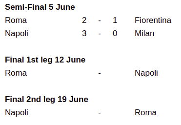 Lazio failed to organise their re-arranged final fixture, so default 0-3, handing Roma top spot in the group and a home semi-final against Fiorentina.