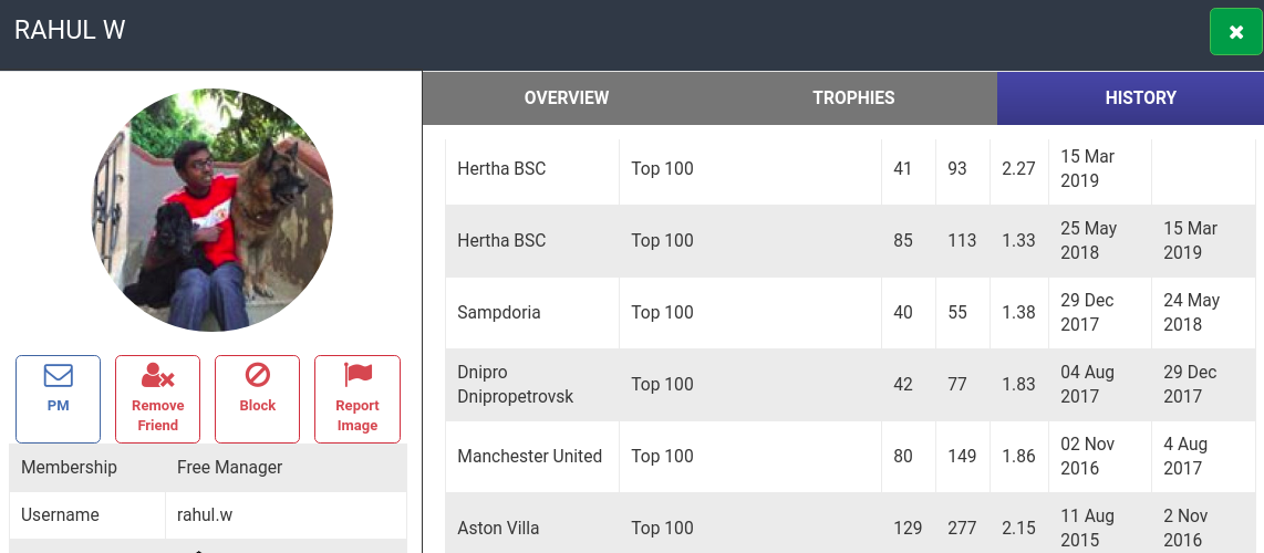 Rahul has managed in every division except D4, and won D3 twice – with first club Aston Villa in Season 3, and now with Hertha Berlin.