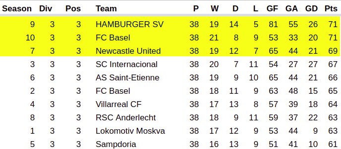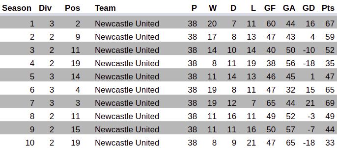 Newcastle have finished lower than 4th in D3 only once in Top history.