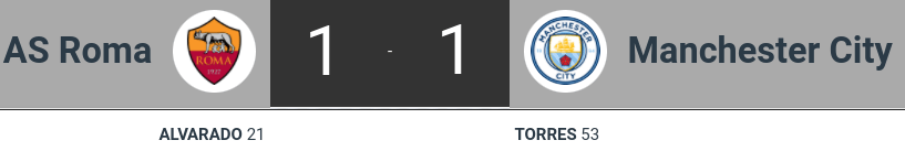 City’s lead was reduced to nothing in the first half in Rome, and that away goal was potentially counting double if Roma could hang on.