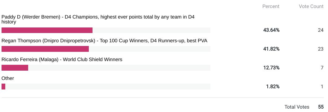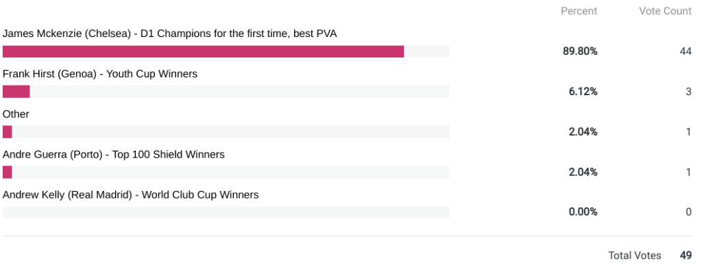 I would like to thank all the managers who voted for me huge success at Bremen big transformation with the squad see us reach Division 3 hoping for the success to continue next season.