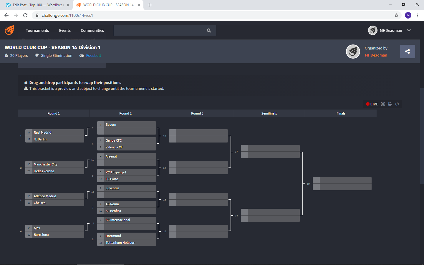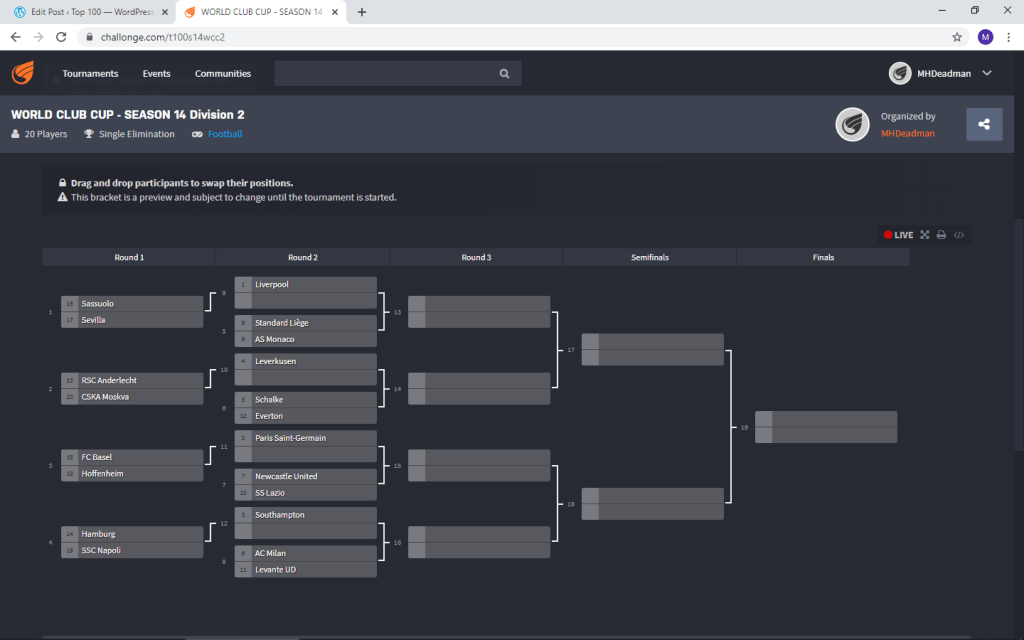 Admins for each division will check that fixtures are arranged and chase managers via PM and/or newsfeed where necessary.