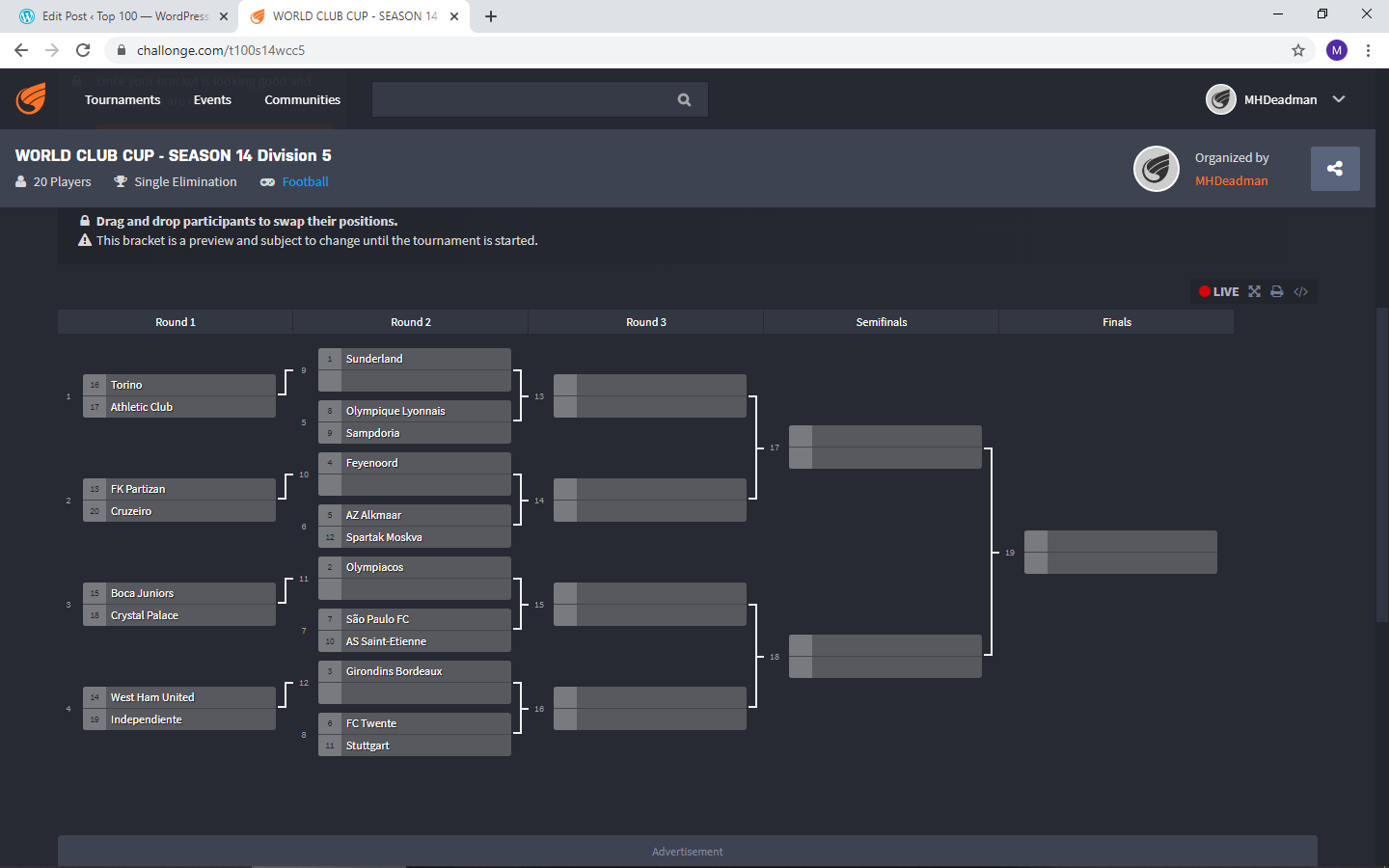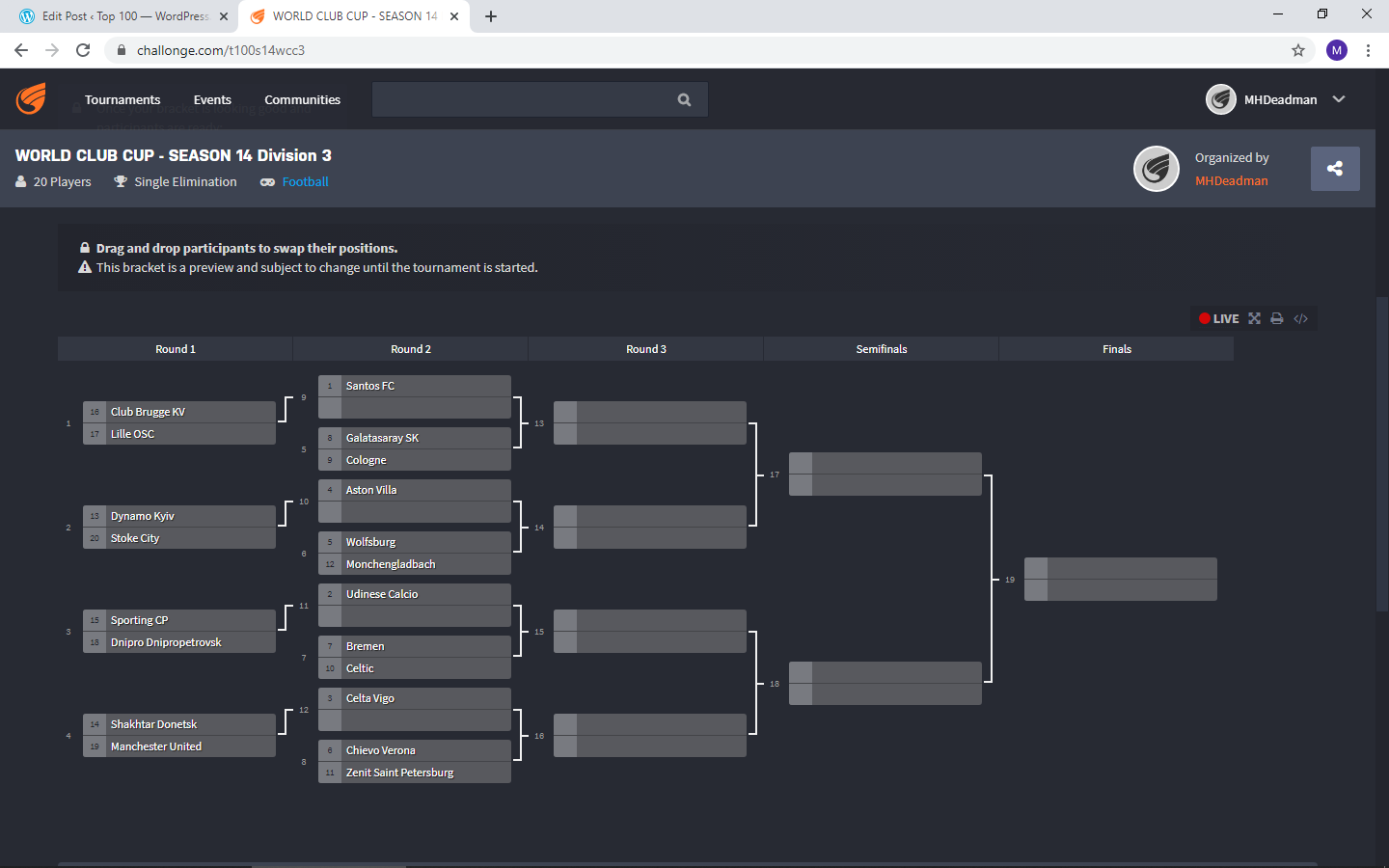 Games finished in a tie will be decided by fictional extra time, information for this can be found at the bottom of the post.