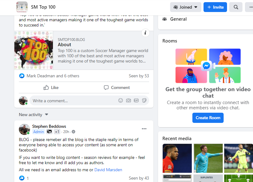 2. Facebook – we aren’t a VMA or VMC but we have over 60 members of the Facebook group meaning it is a great place to share content and post players and even communicate directly via managers with messenger – which is instant and not limited like PM’s in Soccer Manager – the ability to upload pictures, videos etc as well gives it an added feature.
