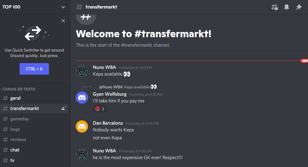 4. Discord – something that is being promoted by Soccer Manager and Nuno has created a userfriendly discord group for Top100 – why is Discord good? Well with its individual channels information doesnt get lost persay? Definately worth checking out as we look to build our communities some more?