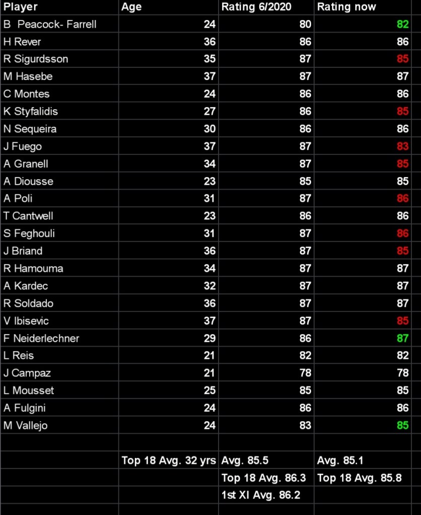 In the 12 months + since then the team has undergone numerous transitions and player trade-ups, with the objective always to improve the first team rating and reduce the squad age if possible. This kind of change takes years to maximise and is still a continuous work in progress. The team has come on leaps and bounds since the start, the boss is always looking for trades, always scouting for talent around the world, which will only add more value and interest to the team. Here’s how the team looks now.
