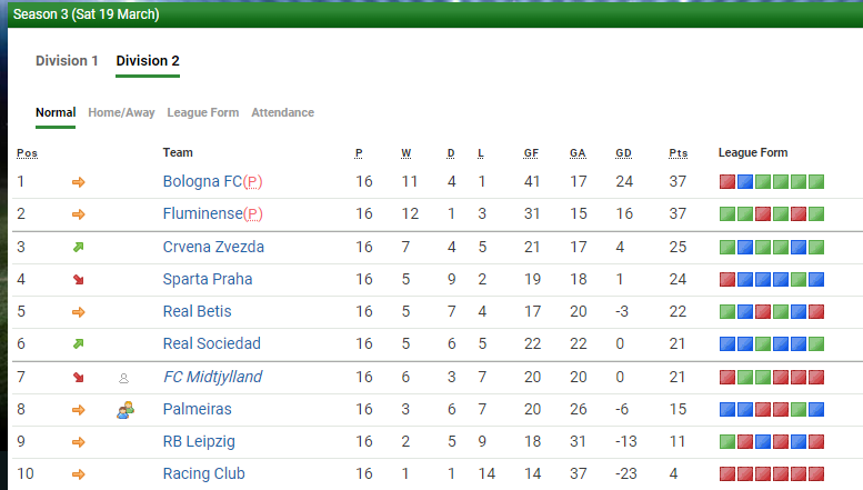 Unfortunately Real Sociedad did not immediately manage to find the best scheme to play this championship and by the time we did it, the key men I had told to make the leap in quality were missing. Unfortunately Pedro’s assists and Abraham’s goals were missing, Raum didn’t play at his best. In the middle of the season we changed the midfield line which gave excellent results, we are sure that the team will fight to win next season!