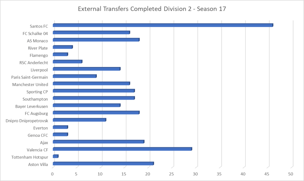 Time to look at Division 2 internal and external deals in Season 17 – and it doesnt make good reading – in fact they had the lowest number of total deals completed when adding up the stats.