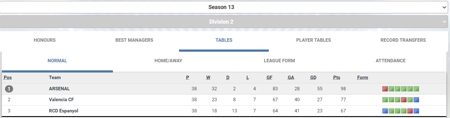 A really slow start for Arsenal in the league and then a big second half of the season, additions to the squad of Robertson, Raphina and Koke became key additions in the run in, we just seemed to hit form and win after win we worked our up to the top four hoping to stay in touch, some lack of consistency was costing all teams dearly, Juventus looked like the form team, heading into the run and if we had not won, then it would have been a great last game, Juventus had to play Barcelona, anyway it was not to be and we now face Madrid in the last game with no pressure, we hope to finish on a high, but will be giving game time to a couple of players.