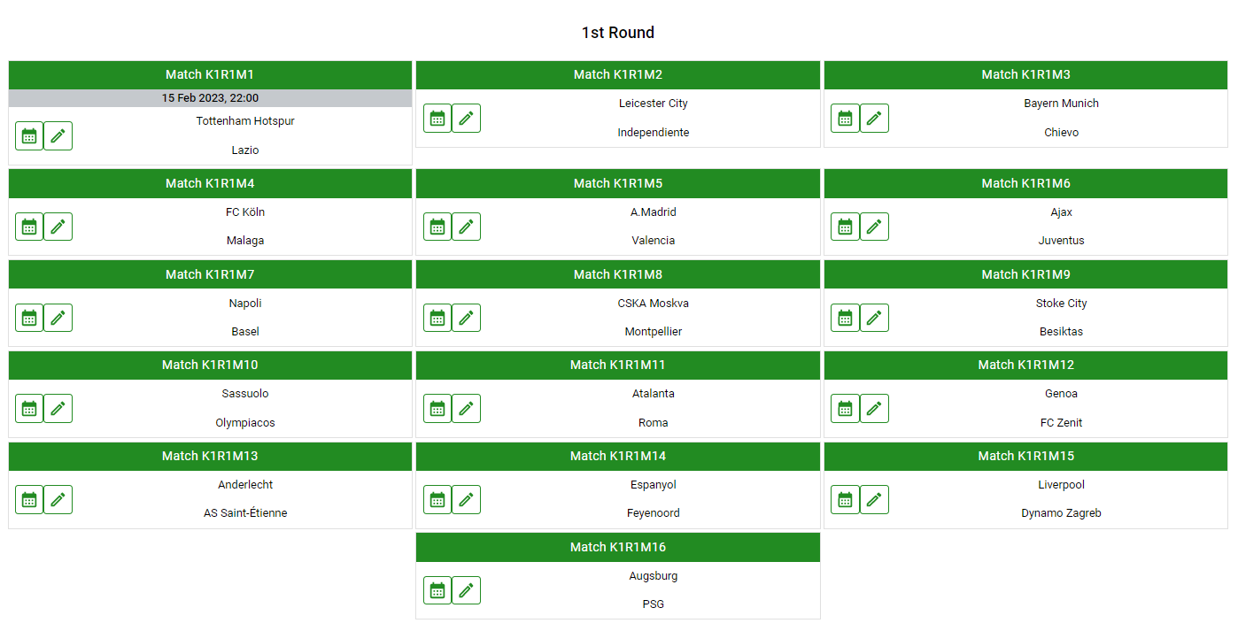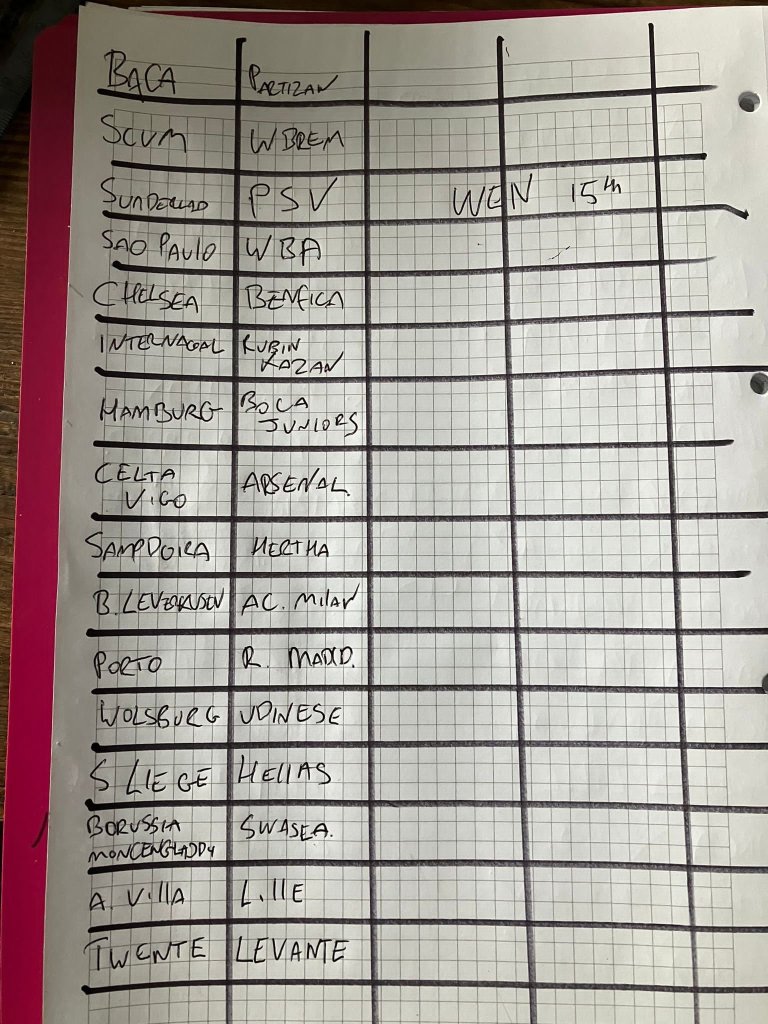 Matches to be played Wednesday 15 February.