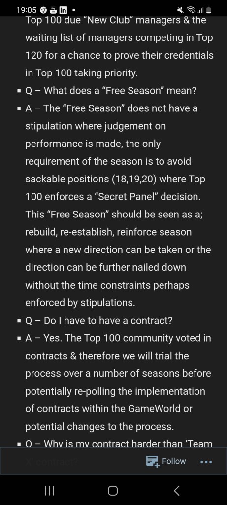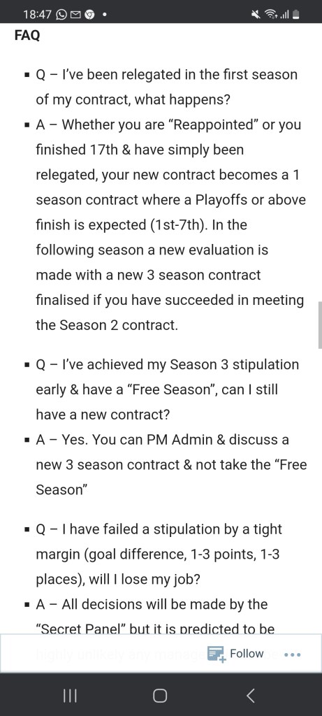 We looked into the rules as we feel Levante have brought the game into disrepute. As per below, having finished 20th in division 1 last season, the managers position should of gone to a panel. This did not occur, however what had escalated the situation further is he should of got a 1 season deal this time around to prove himself that it was a one off, with a minimum top 7 finish. On both counts this has not occurred. These rules are in place to prevent squad decimation in which he is 100% guilty of. This has tarnished this tournament giving a clear unfair advantage over the other 99 managers.