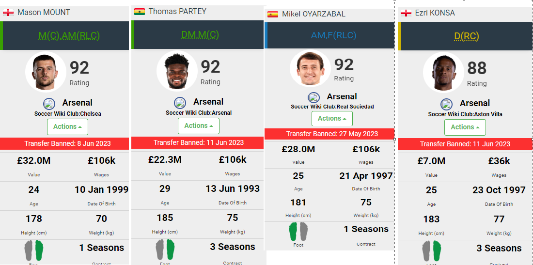 A flurry of transfers leaves the Gunners with a new line up, hopefully business done early season as usual. Really pleased with the players adding to hopefully risers in Raphina 91, Rudiger 92 Pavard 91.