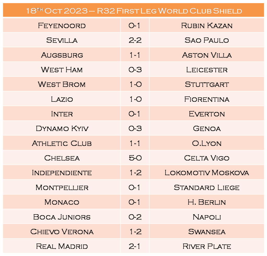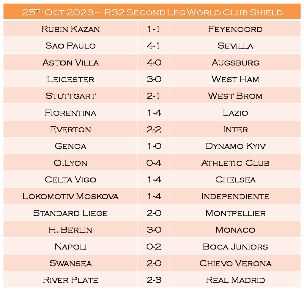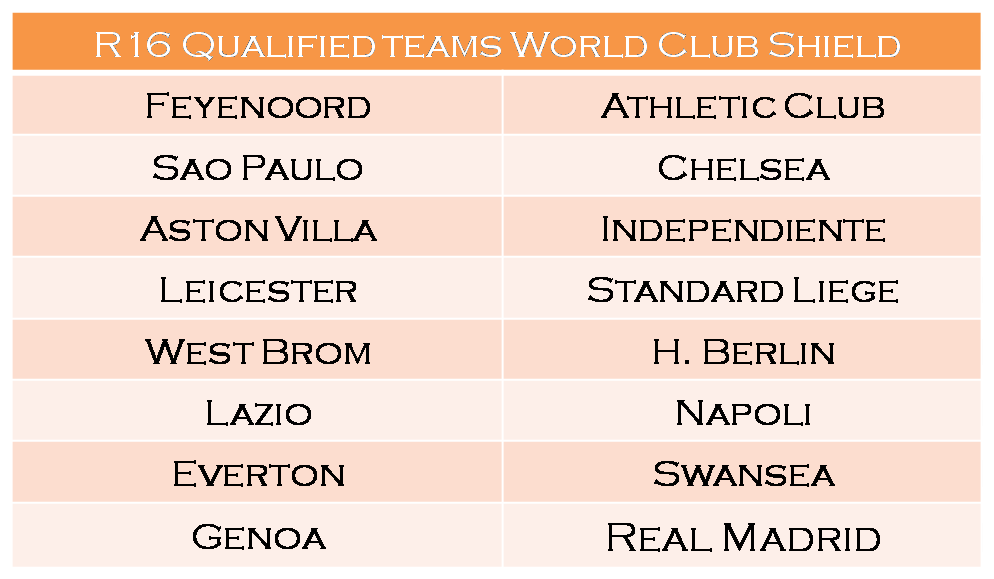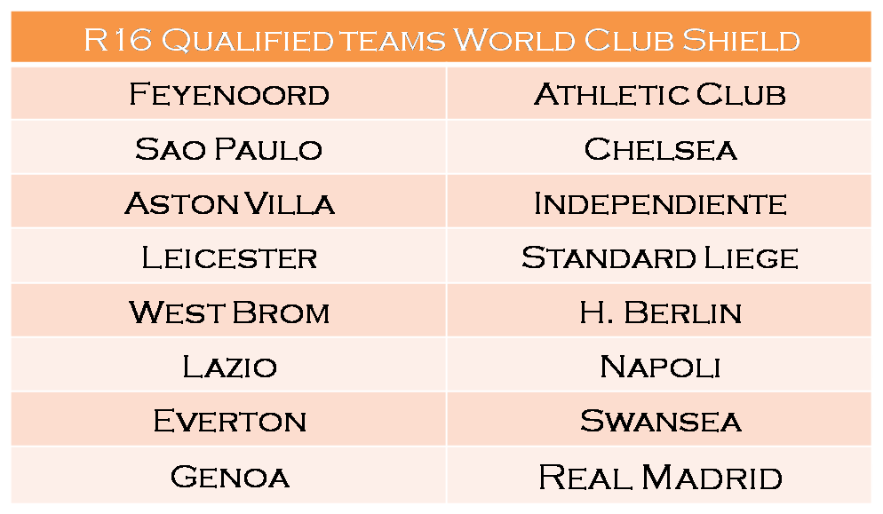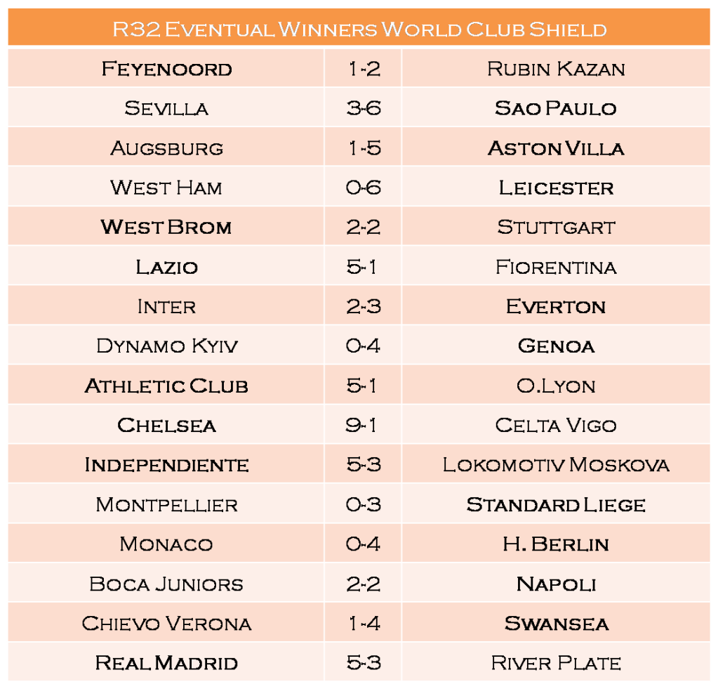 Congratulations to all the winners of R32 of World Club Shield. The draw for next round will take place in the weekend and fixtures and other information will be updated accordingly. Good luck to all.
