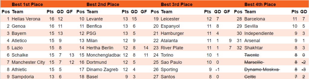 As per the competition format for this season, the top three teams in each group qualify automatically, followed by the five best fourth placed teams.