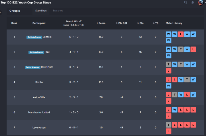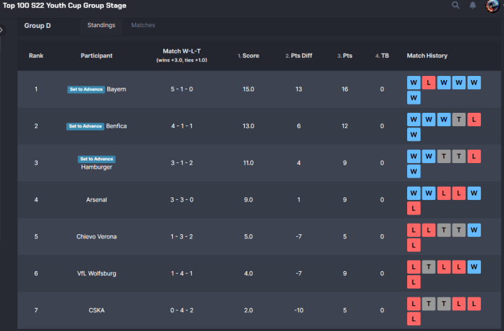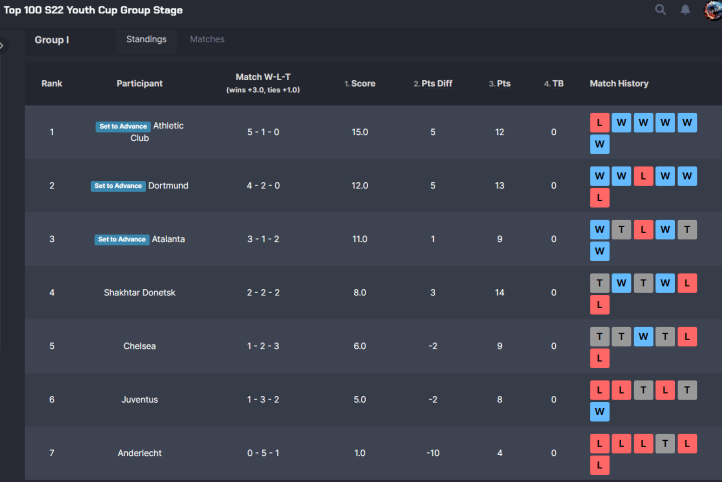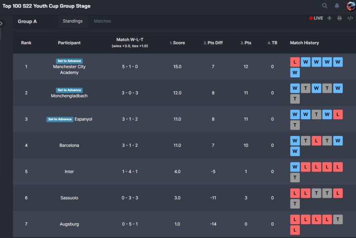 In the meantime, all the final results and tables are on the Challonge website, and below. (Note: “Score = Points”, “Pts Diff” = Goal Diff”, and “Pts” = “Goals For”.)