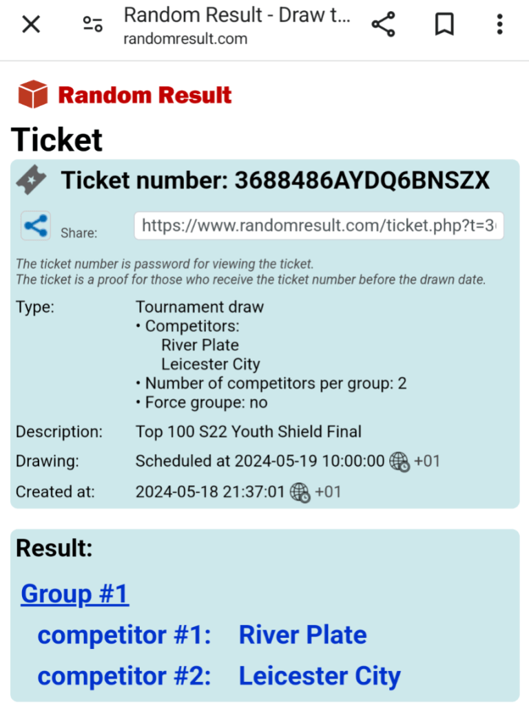River Plate vs Leicester City 1st leg Saturday 25 May, 2nd leg 1 June.