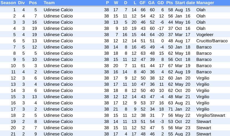 Udinese have reached the playoffs in two of the last four seasons under manager Mark Stewart. They must be a good bet to do it again this time.
