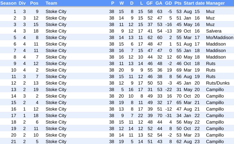 Stoke made the D2 playoffs in three of manager Seb C(ampillo)’s nine previous seasons as manager, winning the final in S15.
