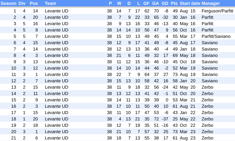 That’s just out of reach for Levante, but they look sure to push Manchester City all the way to secure their second promotion to D1 in ten seasons under manager Salvatore Zerbo.