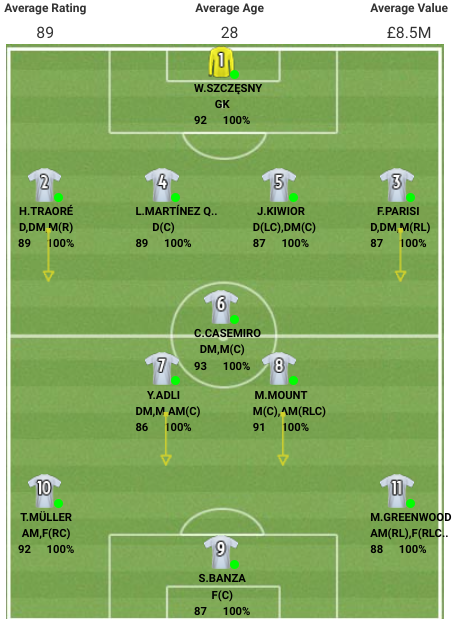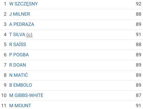 I replaced Milner with Hamari Traore at right back, Silva with Lucas Martinez Quarta, Saiss with Jakub Kiwior and Pedraza with Fabiano Parisi, the latter three could all get ratings rises in the next reviews (not all necessarily this time, but in future reviews).