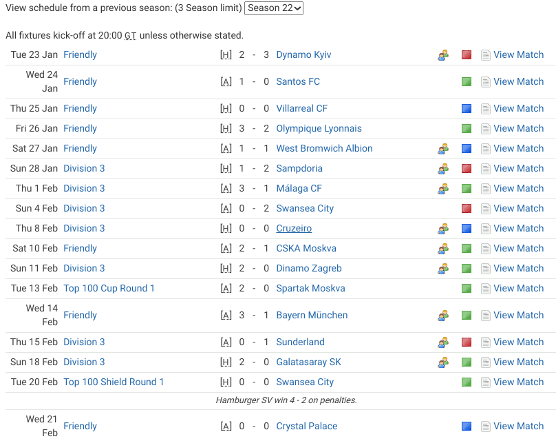 Our first official trophy in Top 100 following Shield defeat at the hands of Feargal Hickey’s D5 Stuttgart in S2 and in S19 in the Cup against Paul Masters’ Celta Vigo.