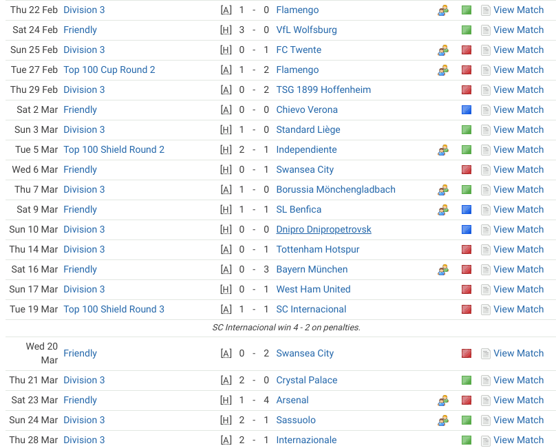 In our next 8 games our record was even worse. 3-1-4 3-5 10, 4 cleans sheets and 5 games without a goal! Something was badly wrong. We’d switched from 4-2-3-1B to 4-3-3A slowball and tried different variations of it, but things were clearly going from bad to worse.
