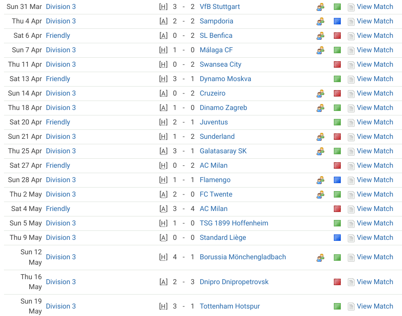 Galatasaray away was our turning point. Six games unbeaten, a 5-2-1 15-7 17 (3 clean sheets, 1 failed to score) record in the next eight games thrust us up the table and into the playoff places. Our only defeat at in-form Dnipro was probably due to being without our then defensive midfield lynchpin Nemanja Matic who we sold to D5 champions Shakhtar.