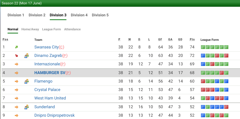 After last season’s final game relegation, I was determined to get Hamburger back into D2 at the first attempt, if at all possible. I knew it would be tough and so it turned out with a tight 1-0 final game win over Flamengo in the Playoffs.
