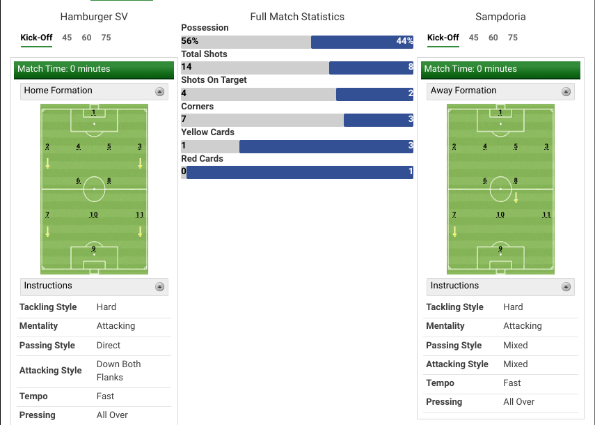 We started the season in the worst possible way with a 2-1 home defeat against Beddows’ “Super” Samp. I’d decided not to mess around with silly formations and tactics like I normally do and this was the result.