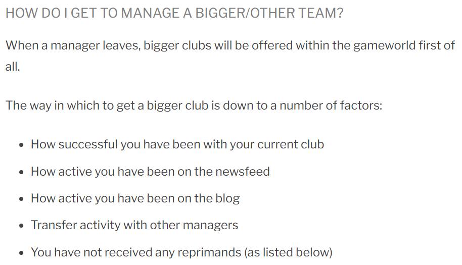 However, I personally feel strongly that Top 100 is such a competitive and active game world that the better and bigger clubs need managers who login most days, and who make a point to read the newsfeed to keep up to date with what’s happening in the game world, and who check and respond to messages in a timely and helpful manner.
