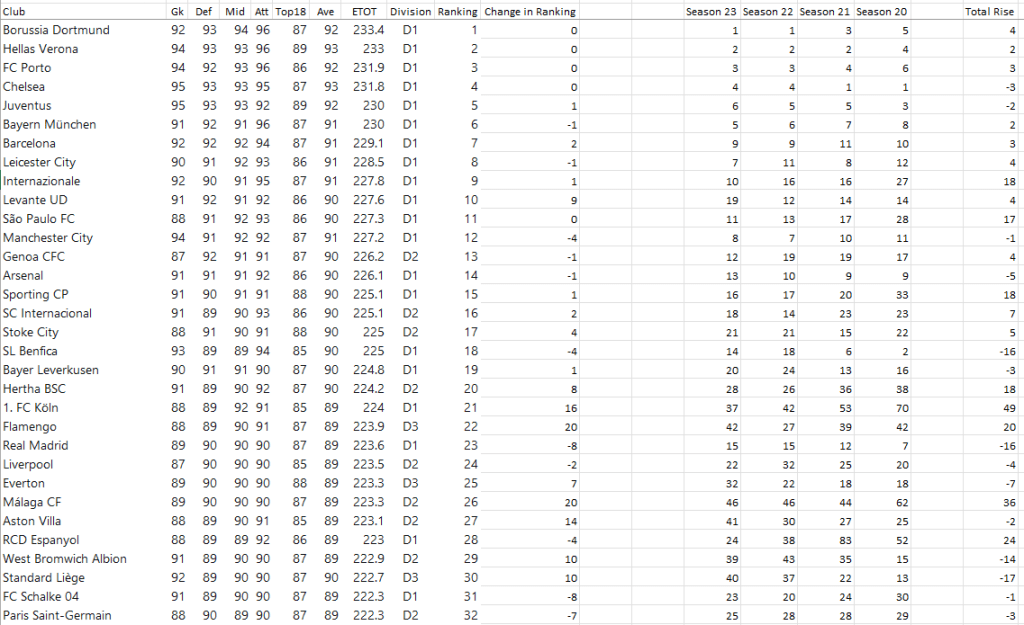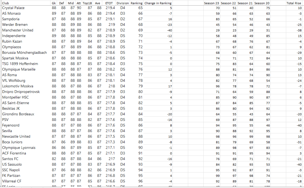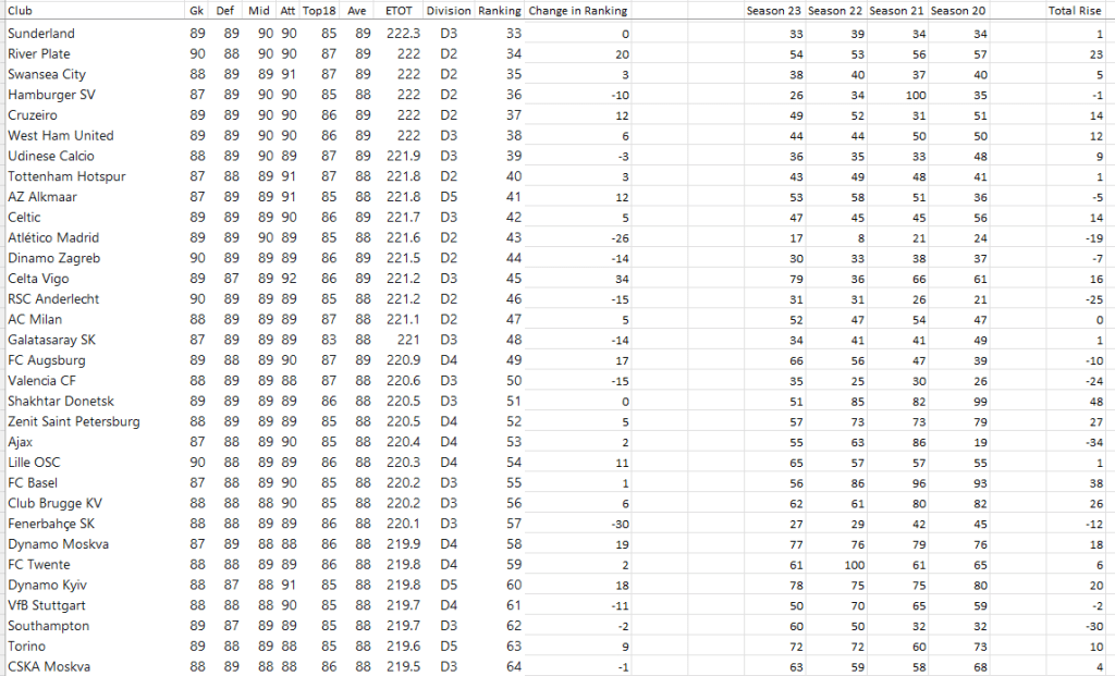 This post comes with the usual caveats: it’s for fun, we’re on the verge of rating updates so this is a point in time look at power rankings. And a shout out to Malcolm on whose data this is based. Over time, I do think it reflects a manager’s impact on the team – which managers can improve their teams v. which sink them or abandon ship to new pastures. The top 5s are comparing last season to this season, and season 20 to now (since that’s when I joined – I think) Without further ado…